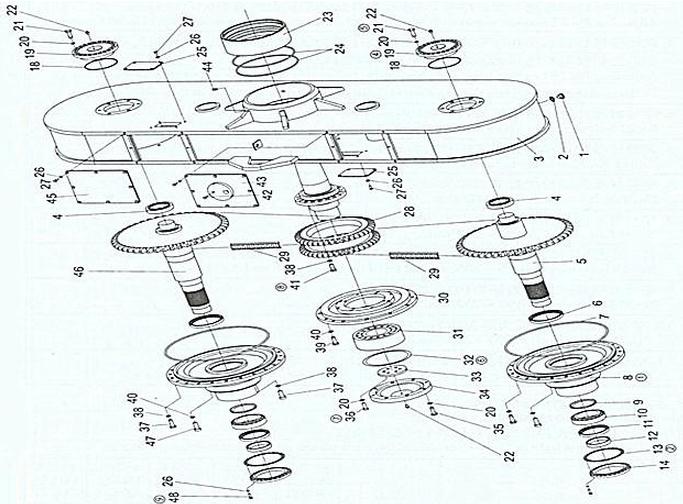 4.平衡箱每側(cè)加注23L90#重負(fù)荷齒輪油,主減速器及行星減速器加注28L90#重負(fù)荷齒輪油,每工作6個月或1000小時時更換齒輪油,各軸承加注足夠的3#鋰基潤滑脂。